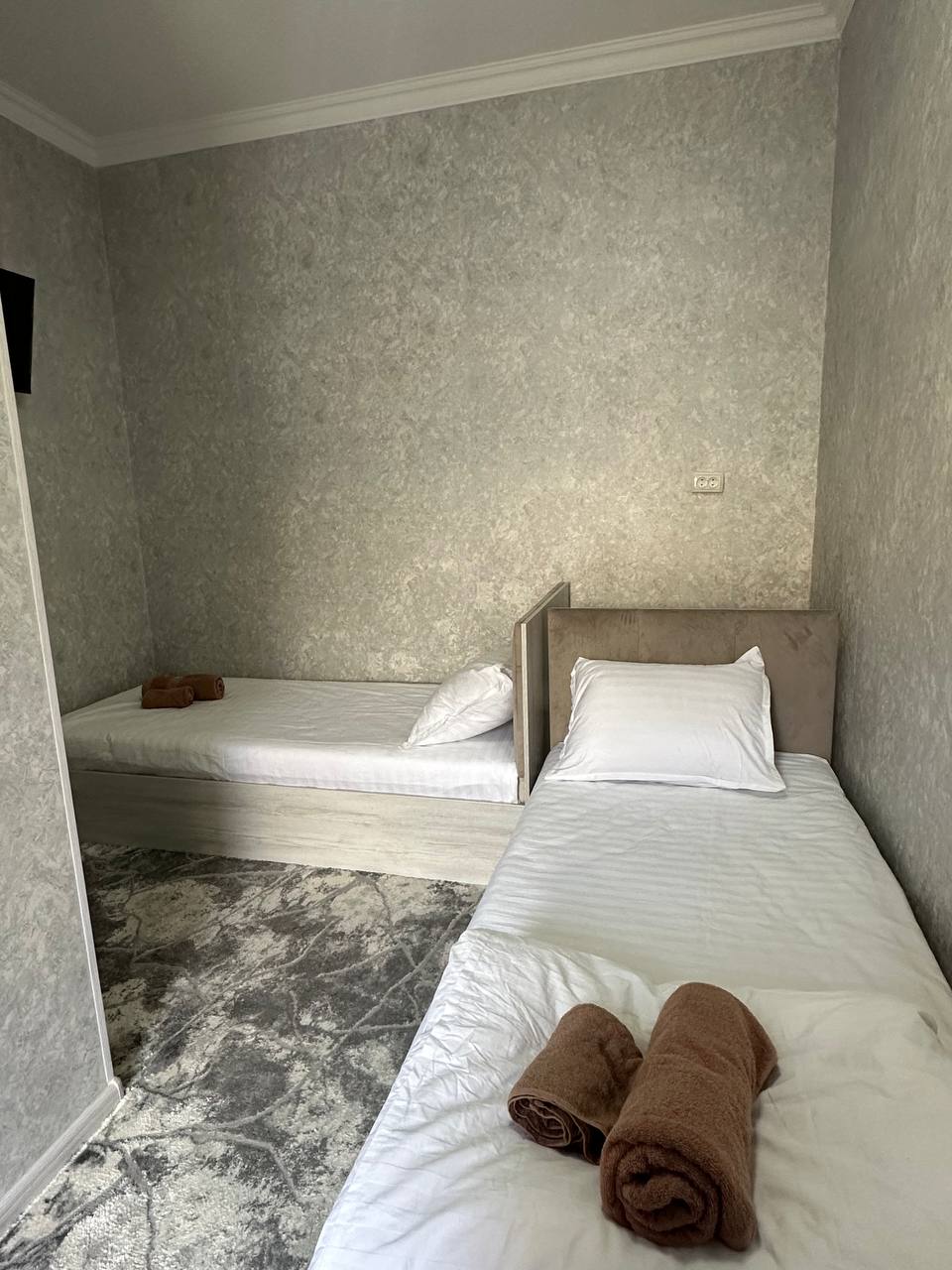 La casa está en el centro de la ciudad. ¡Cerca hay tiendas, un hospital, restaurantes con cocina nacional! ¡Aquí es donde se hacen los mejores pilaf y samsa! Hay 4 habitaciones en la casa: cocina, pasillo, dormitorio, inodoro/ducha por separado. Puede alojar a 5 personas. 1 cama doble, 1 sofá cama, 1 cama individual. Todos los servicios están disponibles, como lavadora, aire acondicionado, TV de pantalla plana grande, acceso a servicios de búsqueda de películas, YouTube, etc. ¡Puedo reunirme contigo personalmente en la estación de tren o en el aeropuerto!
