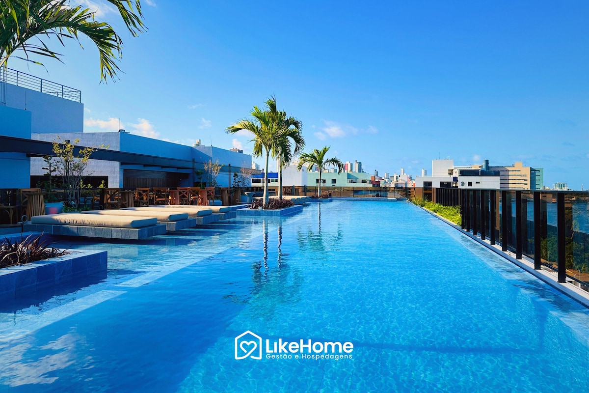 Disfrute de una experiencia elegante con una ubicación privilegiada. Frente de la playa de Bessa. Es una de las pocas propiedades de la región con piscina. Confort e iluminación con electrodomésticos de primera calidad , típicos de un hotel de 5 estrellas. Seguridad las 24 horas. Aire acondicionado y Smart TV con Netflix y GloboPlay gratis en el living y todas las habitaciones. Cochera fija Piscina en el Rooftop y parrilla. Lavarropas digital dentro del apartamento y lavandería en el condominio.