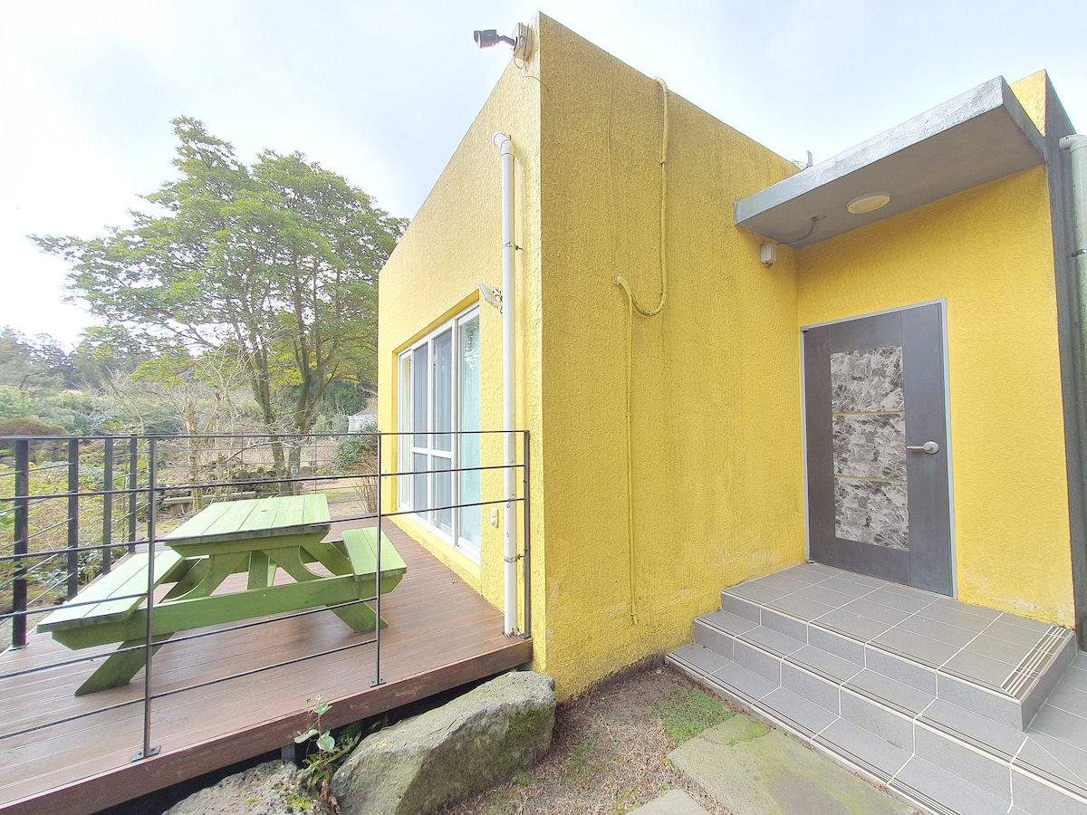 Es un alojamiento que tiene como patio delantero el misterioso mar de Jeju de color esmeralda.