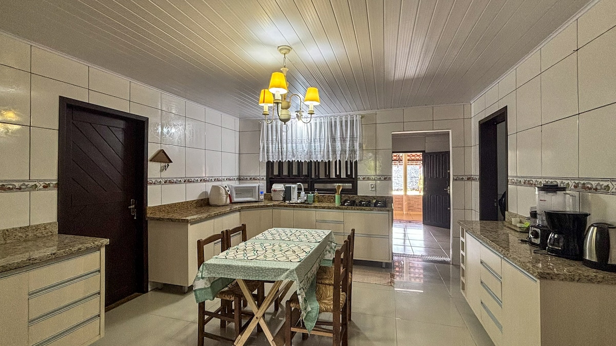 Imagine waking up to birdsong, gathering fresh eggs straight from the nest, and ending the day around a crackling fire under a sky stitched with stars ✨ Our cozy little retreat welcomes up to 5 guests in 2 comfortable bedrooms. It offers a fully equipped kitchen, a private bathroom, and a deck for meals overlooking the garden and mountains ⛰️ 🚗 Free on-site parking and a bus stop right in front 🚌 📍 Next to BR-101, 5 minutes from Expoville and 12 minutes from downtown Joinville.
