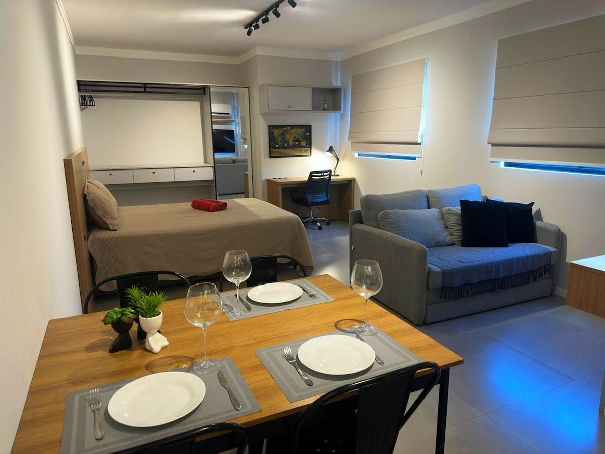 En Saguaçu, el mejor barrio de Joinville, 402 Studio H es un loft con muy buen gusto y espacio. Toda la comodidad para descansar o trabajar. Cocina completa, aire acondicionado, wifi y accesorios de higiene. Aparcamiento gratuito. Tienda de autoservicio 24 horas en el vestíbulo del edificio y lavandería de autoservicio OMO - Pago y uso a través de la aplicación. Hermosa piscina y gimnasio en la azotea. Ubicación cerca de todo, con un mercado, panaderías, restaurantes, farmacias y fácil acceso al centro, Teatro Bolshoi, Centreventos.
