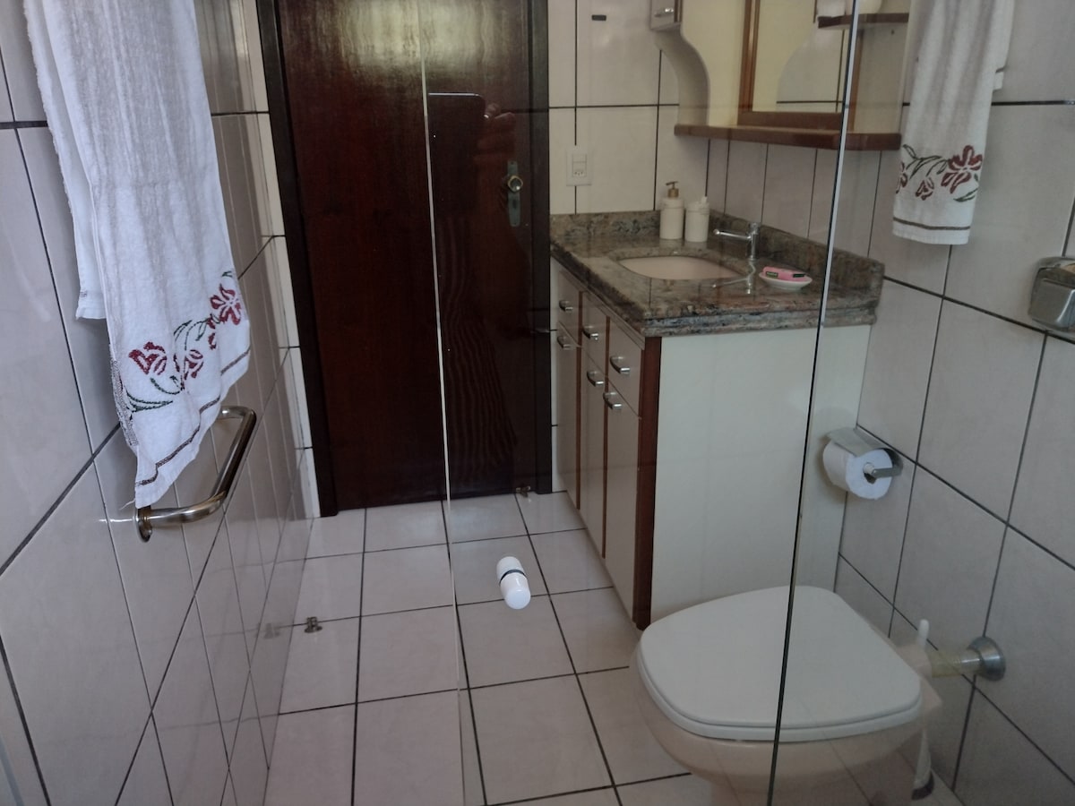 Apartamento en una planta alta, en el centro de Joinville con 1 suite con cama tamaño queen + 1 sofá cama + lavabo. Zona de barbacoa en el balcón. Televisión inteligente y wifi. A 100 metros de Via Gastronômica y Shopping Mueller. A 01 Km de Centreventos Cau Hansen. Cocina con estufa de inducción, microondas, freidora de aire, cafetera Nespresso, hervidor eléctrico y utensilios. Lavandería colectiva disponible en el edificio con costo adicional. El edificio también cuenta con piscina, gimnasio*, cine* y sala de reuniones *. *conf. agenda de disponibilidad *