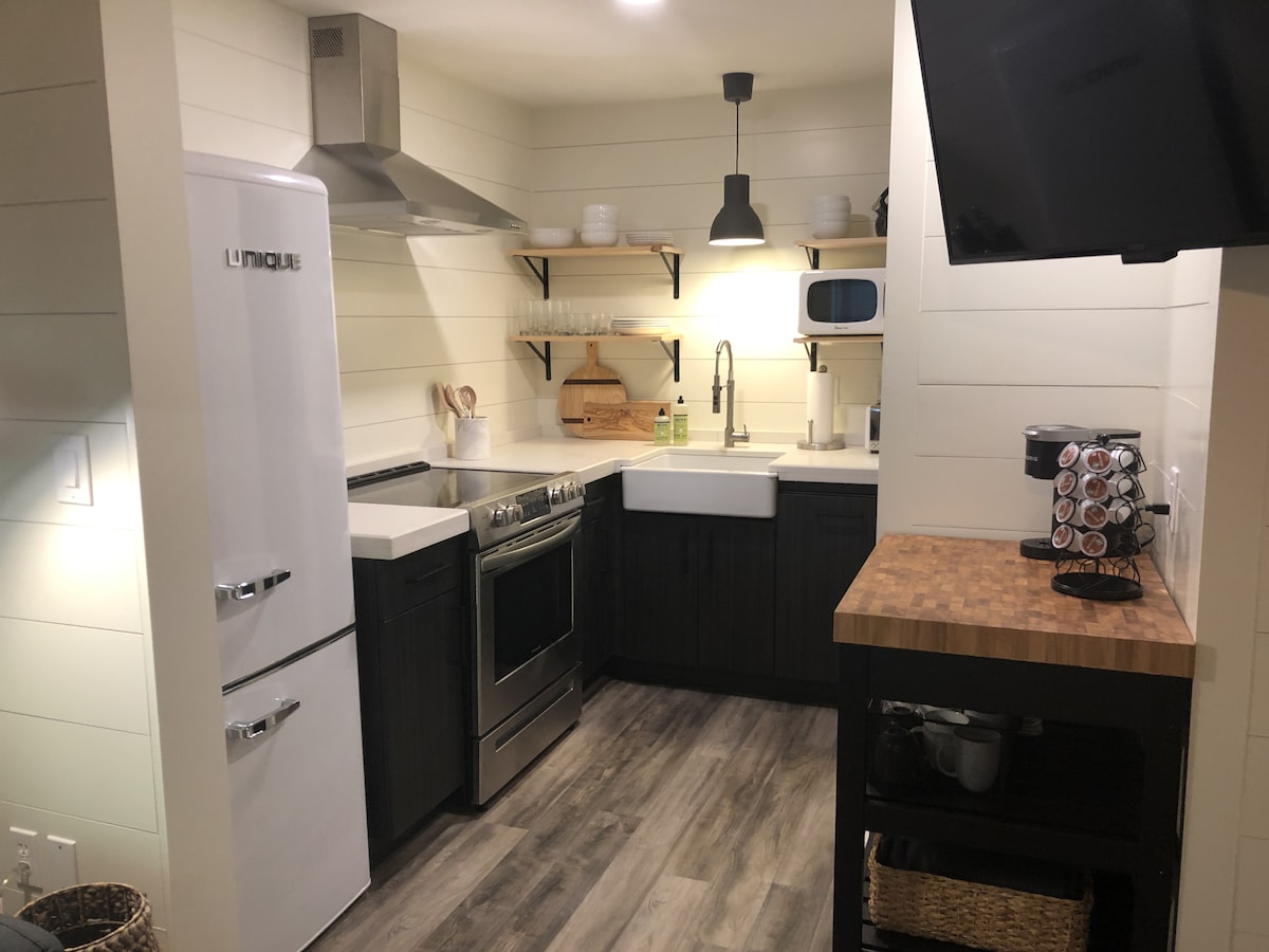 Alójate a unos pasos del campus en este encantador estudio de 300 pies cuadrados, a 10 minutos a pie de Jordan-Hare y a 7 minutos de Toomer's Corner. Totalmente renovado con cocina moderna, Keurig, cama Murphy, baño estilo spa y TV inteligente de 42". Disfruta del café de la mañana o de las bebidas después del partido en tu patio privado. Incluye 1 pase de aparcamiento y entrada fácil con teclado. ¡Ideal para fines de semana de fútbol, visitas al campus o una acogedora escapada a Auburn!