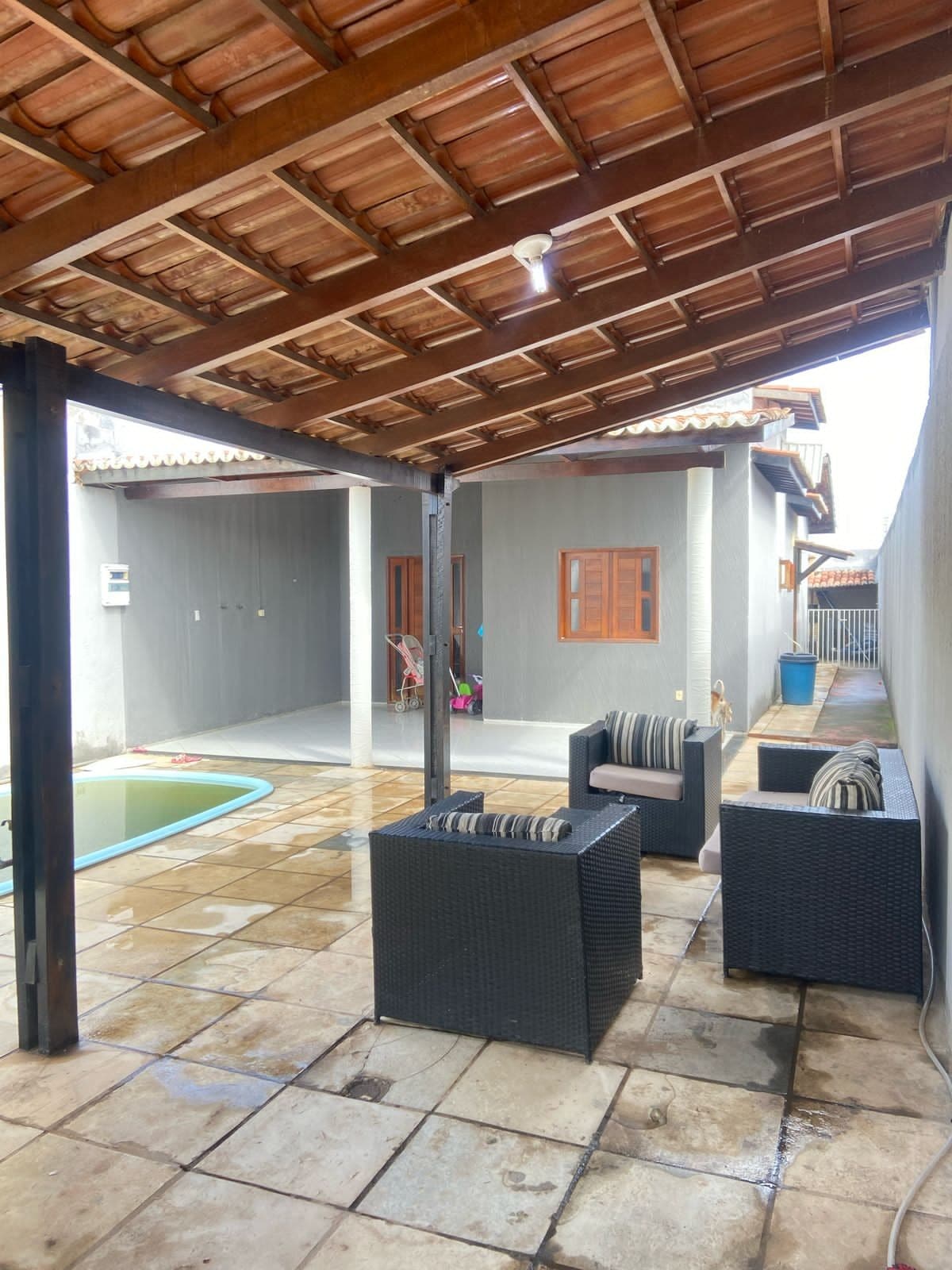 Relaxe e aproveite dias tranquilos na Casinha Deck, um espaço acolhedor com piscina, cozinha completa, churrasqueira, quartos climatizados e banheiros com chuveiro eletrico. Nosso espaço é perfeito para famílias, casais ou grupos que desejam conforto e privacidade em um local privilegiado a 5 minutos do aeroporto e a 15 minutos dos principais pontos de turismo religioso da cidade.