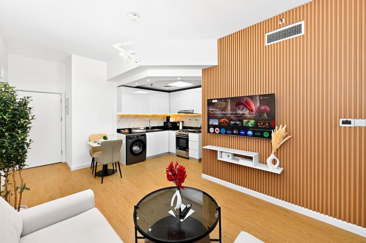 🆕 Newly renovated & furnished (Sept ’25) 🤖 Alexa-powered Smart Home ✨ 800ft² / 74m² on 28th floor 🌆 Skyline & 🏝️ Lake views 💻 Dedicated workspace 🛜 400 Mbps WiFi 🛁 Modern bathroom 🍽️ Premium kitchen 🅿️ Free parking 🚆 1-min walk to Metro 🏋️ Gym access • 👮♂️ 24/7 Security 🧹 Free weekly housekeeping for long stay (15 days+) Perfect for travelers seeking luxury, comfort & smart-home convenience near JBR Beach & Dubai Marina Message us if you have any questions!
