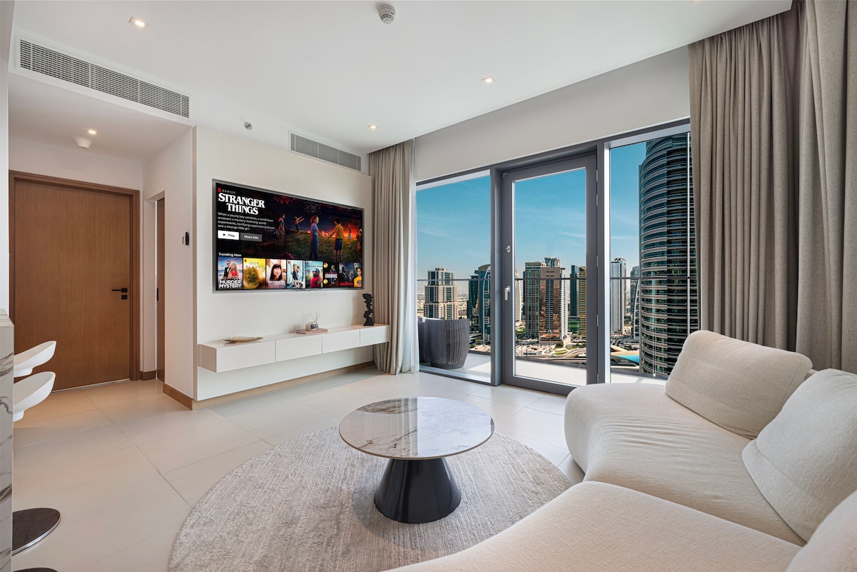 Tu casa INTELIGENTE de lujo está a 10 minutos de la playa en el exclusivo barrio de Jumeirah Lakes Towers. Usa tu voz para controlar las luces y reproducir música, y disfruta de la cómoda cama de día mientras ves Disney+ en un televisor HD de 50 pulgadas. Estás a solo un minuto del metro con aparcamiento gratuito, gimnasio y sauna. La vida no puede ser más cómoda con docenas de restaurantes y tiendas a tu puerta. ¡Todos son bienvenidos! Nota: La piscina del edificio está cerrada por mantenimiento hasta nuevo aviso.