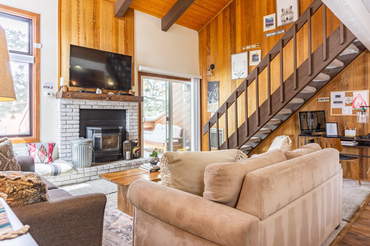 En este alojamiento se respira tranquilidad: ¡relájate con toda la familia! Casa remodelada de 2 dormitorios + loft con un parque como entorno en Snowcreek II. ¡Muchas mejoras! Nueva chimenea de piedra apilada del suelo al techo con una estufa de pellets energéticamente eficiente. La cocina tiene todos los electrodomésticos, encimeras, armarios y azulejos personalizados nuevos. El loft está cerrado por un lado para mayor privacidad. Baños completamente remodelados con nuevos tocadores y duchas bellamente alicatadas.