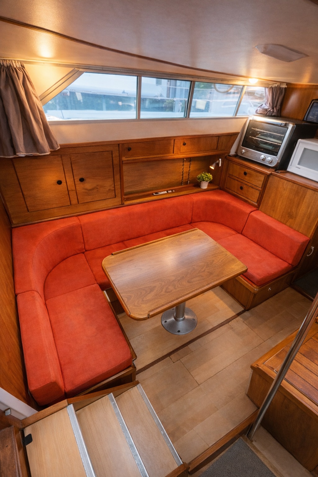 Te quedarás en un velero vintage (1981) con acabados internos de madera okumè y madera de teca en la cubierta. El barco tiene una sala de estar (comedor) y un área para dormir con lavabo de "emergencia" y WC. La ducha con agua caliente y el inodoro están disponibles en la oficina principal del puerto. El amarre se encuentra en una posición exclusiva en la cabecera del muelle hacia el lago, esta situación da una privacidad envidiable. El desayuno se servirá a partir de las 9:30 en el restaurante Approdo.