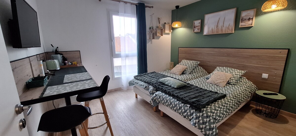 Acogedor estudio «le nature» +parking totalmente amueblado y equipado. Su ubicación ideal, cerca de la estación de tren a 10 minutos a pie del santuario, facilitará su exploración de la ciudad y sus alrededores. El alojamiento está situado en el segundo piso con ascensor de una residencia segura. El alojamiento está equipado con 2 cómodas y acogedoras camas individuales. Café y té en cápsulas individuales a su disposición. El baño está equipado con bañera con toallas y artículos de aseo.
