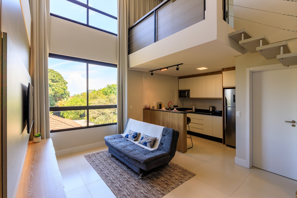Aproveite o charme deste loft recentemente reformado. Os móveis foram todos feitos sob medida para garantir conforto à você! A iluminação do ambiente foi planejada para garantir o conforto dos hóspedes. O loft é climatizado com ar condicionado. Na hospedagem você terá acesso a internet de alta velocidade, sendo possível assistir acessar os serviços de streaming (Netflix, Amazon Prime...) na TV de tela plana com acesso ao Google Chromecast.