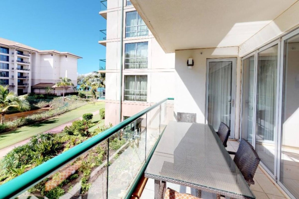 Honua Kai Resort & Spa KONEA 142 - PLANTA BAJA CERCA DE TODO! Disfruta de la amplia sensación abierta y espaciosa con techos abovedados de 11 pies, solo en la PLANTA BAJA, y 1.230 pies cuadrados de espacio interior + lanai/jardín de 420 pies cuadrados, con 2 suites principales y un salón, comedor y cocina abiertos. ¡Abra toda la pared de vidrio a un ENORME lanai con comedor al aire libre y muebles de descanso, bordeando su propio césped privado! ¡Complejo turístico #3 en el estado de Hawái por el viajero Condé Nast!