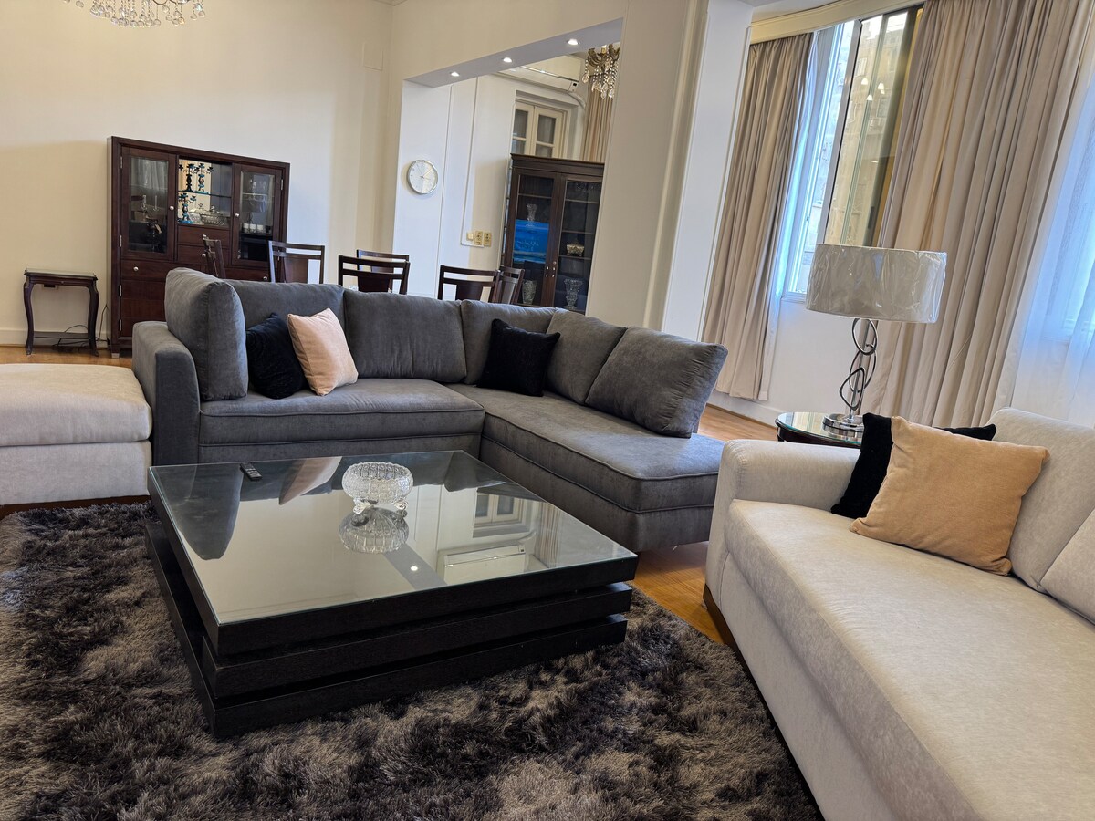 Bienvenido a Skyline Royal Home, tu residencia de ensueño en un edificio histórico en el corazón del centro de El Cairo, a pocos pasos de la estación de metro, la plaza Tahrir, el museo egipcio y otros lugares históricos, nuestro elegante hogar es una mezcla de decoración clásica y moderna, con habitaciones cómodas y acogedoras, todas con vista al horizonte. Nuestro objetivo es crear un ambiente acogedor y cómodo para que te sientas como en casa.