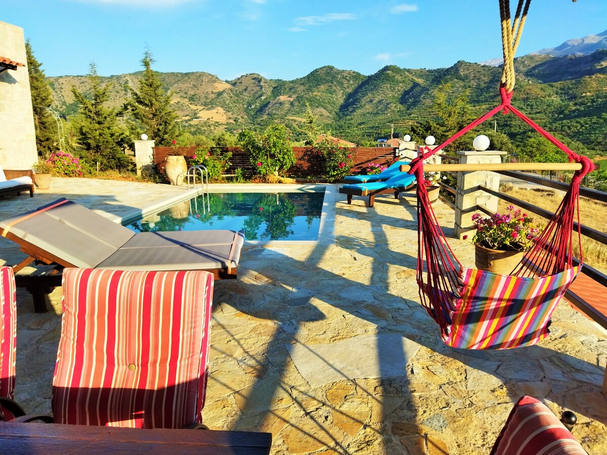 Villa Avra, Pirgos-Villas, piscina climatizada, vistas al mar