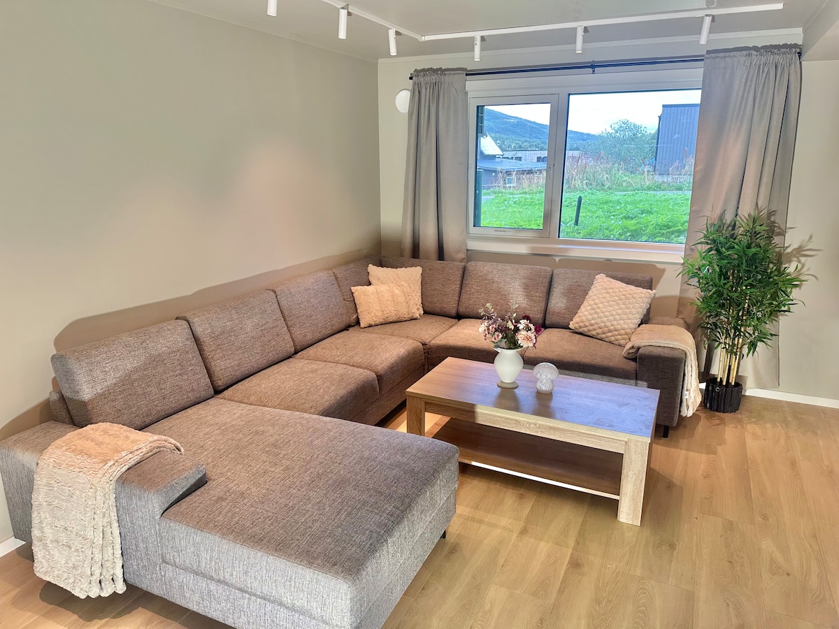 Cool and modern apt with high standard! Built in 2021. Near nature for mountain tours, skiing and paddling. Do kayaking, go on the roughest - or easiest - mountain peaks by randonee or foot. Tromsøs nightlife with fantastic restaurants minutes away. 2 double bedrooms. Located right by the sea. 12 min from the airport, 14 min from Northern Norway's largest shopping center and 20 min from the city. Great convenience store 4 min away. No street lights, no traffic, no asphalt. Welcome!