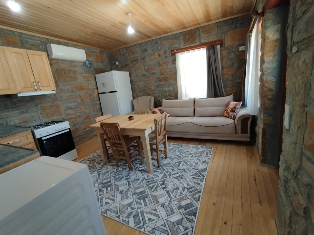 Merkeze düz ayak yürüme mesafesinde ferah taş ev. Evimiz 2+1 büyüklüğüne 4 kişinin çok rahat konaklayabileceği şekilde tasarlanmıştır. Zemin ve mutfak tezgahı mikrobeton ile yapılmış olup eve farklı bir hava katmıştır. Gökçeadanın keyfini bu tarih ile modernliğin harmanlanmış evinde geçirmek isteyenler için tasarlanmıştır. Fotoğrafta görünen binanın üst katı. Arkada kendine özel bahçesi vardır. Alt katı ara ara ev sahibi olarak biz kullanıyoruz yaz aylarında.