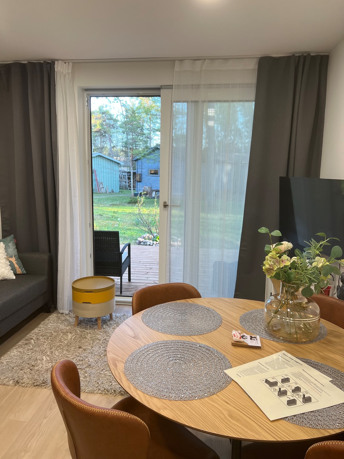 Un apartamento acogedor y elegante con un interior. El sofá del salón tiene unas vistas preciosas y, después de un día lleno de aventuras, es un placer relajarse en la bañera. El apartamento, además de una cocina-sala de estar abierta, también tiene un dormitorio separado, un baño con inodoro y un hall de entrada. El dormitorio tiene una cama doble de 140 cm, y en el salón se duerme en colchones de 2x 80x200 cm. La cocina está equipada con una placa de inducción, horno eléctrico, nevera, microondas, hervidor de agua, utensilios de cocina y vajilla y cubiertos. La tienda de comestibles más cercana está a 150 m Plaza central de Kärdla 1000 m Playa a 1900 m