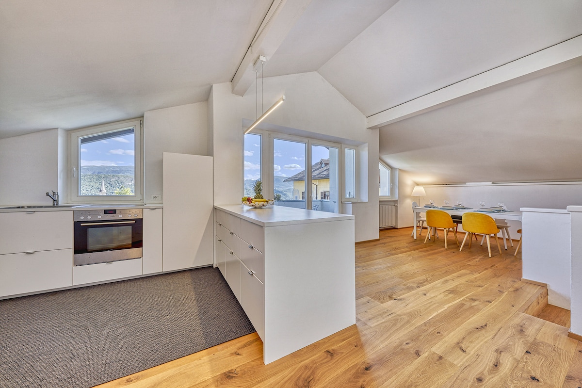 Stilvolles Wohnen im Herzen von Kaltern in einer modernen Loftwohnung auf zwei Etagen in der renommierten Goldgasse. Über den Dächern Kalterns erwartet euch ein Schlafzimmer mit Doppelbett im oberen Stock und ein offener Wohnbereich mit beeindruckender Raumhöhe, Küchenzeile, Esstisch und gemütlicher Couch. Highlights: Regendusche, Glasfaser, Klimaanlage, Internet, privater Parkplatz und Kellerraum für Ski oder Bikes und Südtirol Guest Pass. Genießt entspanntes Wohnen im Zentrum von Kaltern!