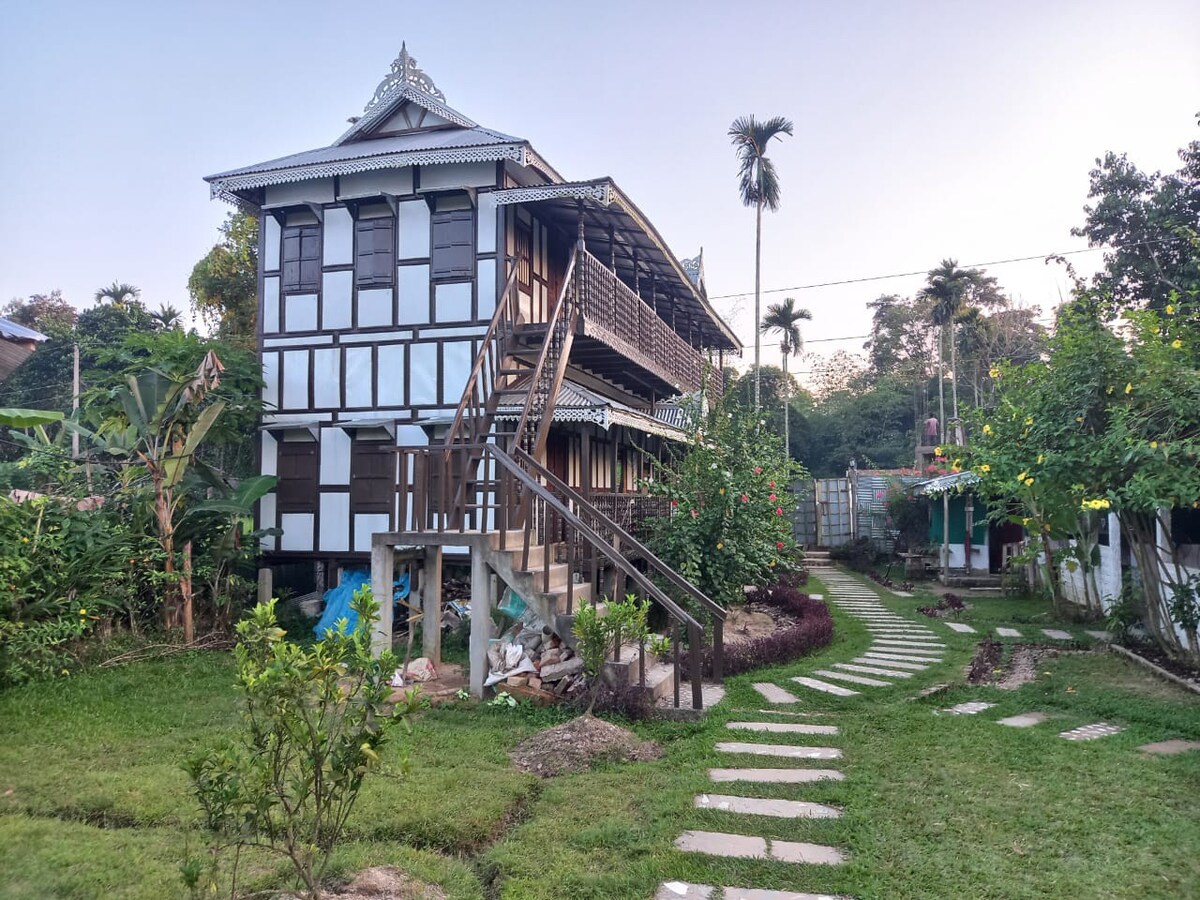 Alójate en una casa de barro tradicional con la familia más antigua de Bhuban Chantai, Tripura, cerca de la Iglesia Bautista. Recientemente renovado, ofrece 1 dormitorio tamaño king, 1 con 2 camas individuales y 1 dormitorio queen con capacidad para 6 adultos. Baños compartidos con la familia anfitriona. Disfruta de comidas tribales locales, pesca tradicional en un estanque cercano y explora la historia local y un museo a solo 30 minutos. Una auténtica experiencia de pueblo en un antiguo estado principesco.