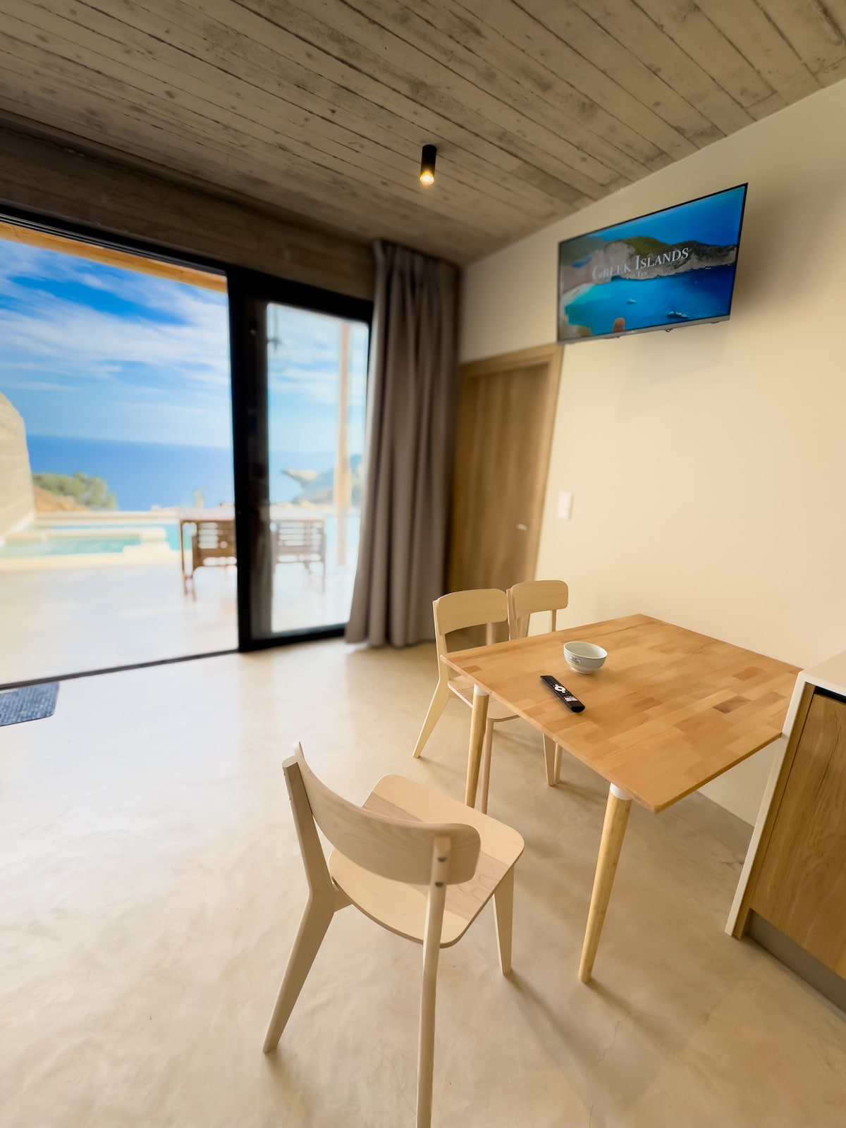 ¡Hermosa casa de 79 metros cuadrados con excelentes vistas al mar a solo 60 metros de la playa de arena del pueblo tradicional Agia Pelagia! ¡La propiedad tiene terraza privada con flores y árboles y vistas al mar de Creta! Diseño industrial con muebles hechos a mano de madera y hierro, techo alto, amplio salón con cocina, 2 habitaciones privadas, 1 aseo privado, lavadora para ropa y platos, horno, máquina para café de filtro, calentador solar y calentador rápido para agua, nevera grande, 2 aire acondicionado, TV led de 42 pulgadas