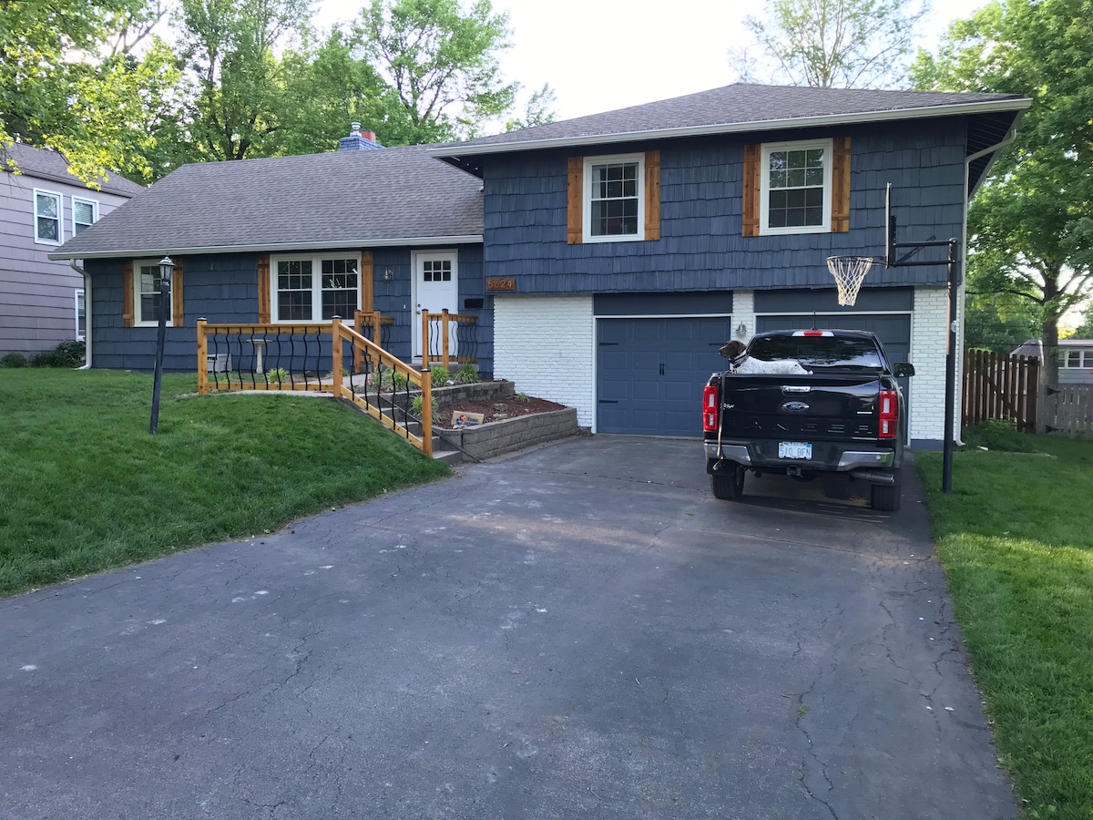 El B&B más cercano y agradable a la Copa Mundial Kauffman/Royals, Arrowhead/Chiefs GEHA. ¡Y el nuevo Pickle Ball SW19 en los estadios! A poca distancia de los estadios. Perfecto para aficionados, conciertos, viajeros, familias, *mascotas, viajeros de campo traviesa, 1/2 acre vallado. A 1/2 milla de la I-70, I-435 y 40 Hwy. Entrada segura cerrada. 3 dormitorios grandes, jefes y reales, porche con mosquitero. Cocina totalmente amueblada. El ambiente/comodidad de ir a la casa de la abuela con comodidades modernas. *Mascotas con aprobación y reglas.
