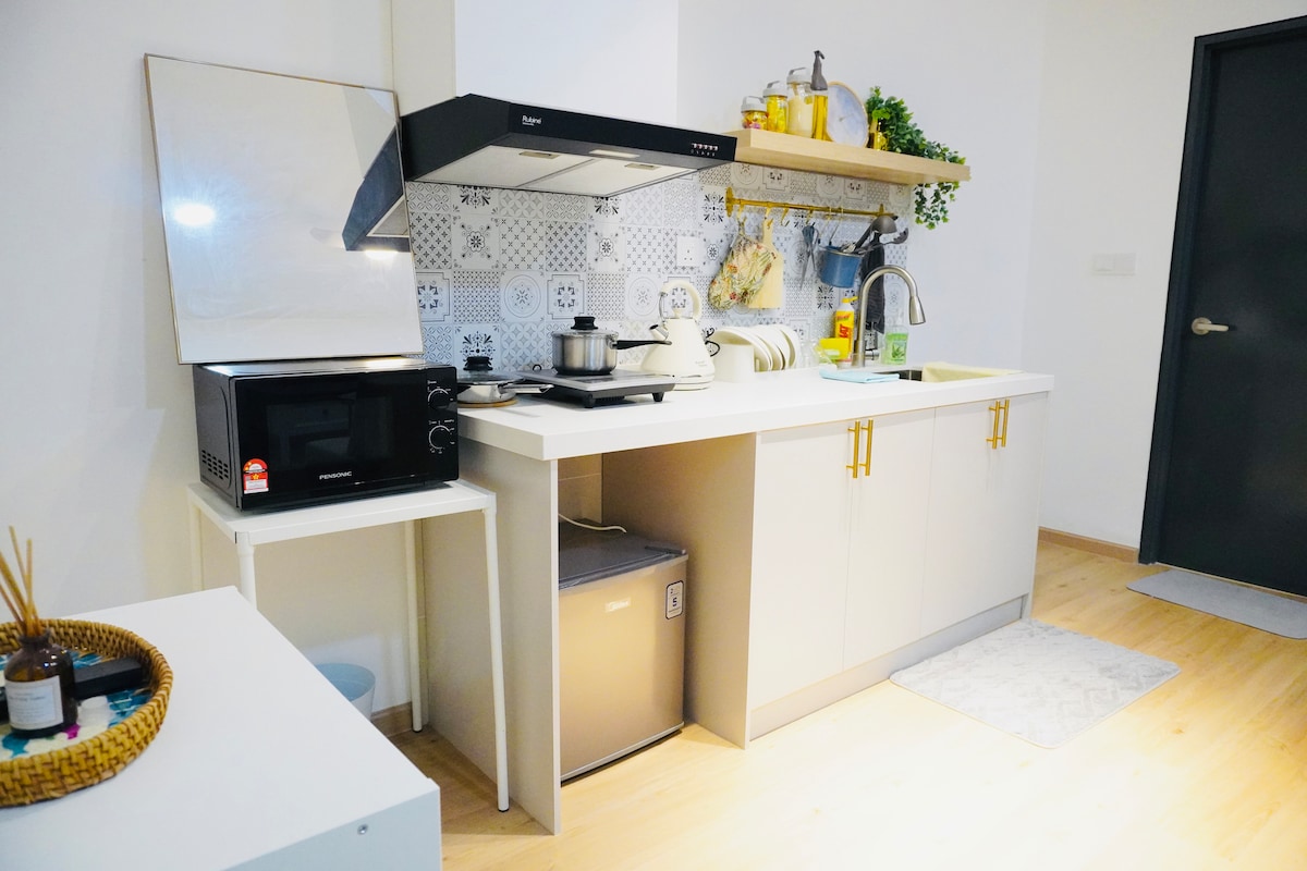 Este estudio tranquilo y céntrico ofrece una estancia sencilla, cómoda y sin complicaciones. Es perfecto para parejas, familias, aventureros solitarios y viajeros de negocios. Distancia a pie: A unos3minutos del centro comercial Setia City Mall y del Centro Convencional de la Ciudad de Setia (SCCC). Distancia en auto: A unos5 minutos del mercado nocturno más largo de Setia Alam Aunos4 minutos de los Institutos Nacionales de Salud (NIH) A unos5 minutos del hospital. A unos10minutos de Central i-City.