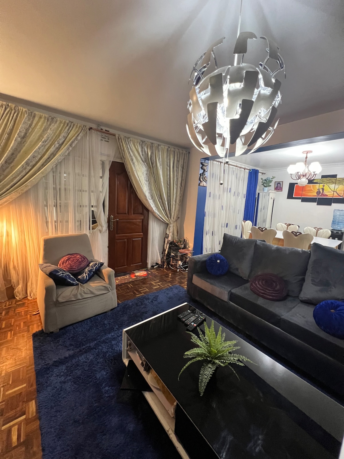 Very appealing, well furnished 3 bedroom en suite apartment located in Lavington behind Junction mall and 5 min from Lavington Mall. One bedroom has a seperate entrance and can serve as a guest room. Located in a quiet and safe area; It meets UN security standards and the conplex attracts people from different nationalities. Unit has a large lounge with dining area and balcony and is well decorated. It has new kitchen appliances. I am a responsible host, cleaning services available twice a week.