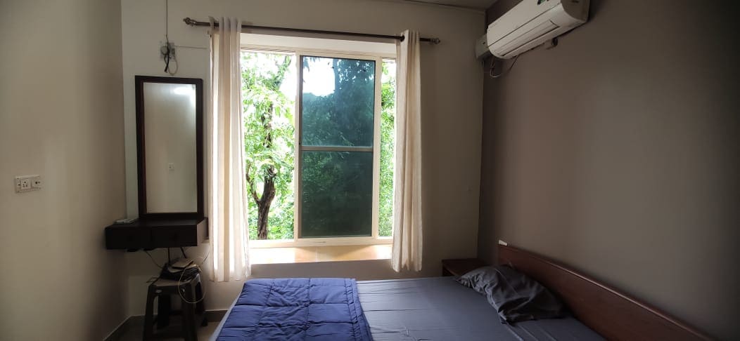 Indulge in relaxation at this super private penthouse featuring a huge covered balcony spanning 11 by 18 feet, complete with a cozy hammock and stunning views. The balcony can easily convert into a closed space for added privacy, creating the perfect atmosphere to unwind. If you're fortunate, you may even catch a glimpse of the full moon while enjoying your favorite movie with a glass of wine Nestled in tranquil surroundings away from main road traffic its just 1.4 km from Bagmane Busines Park.