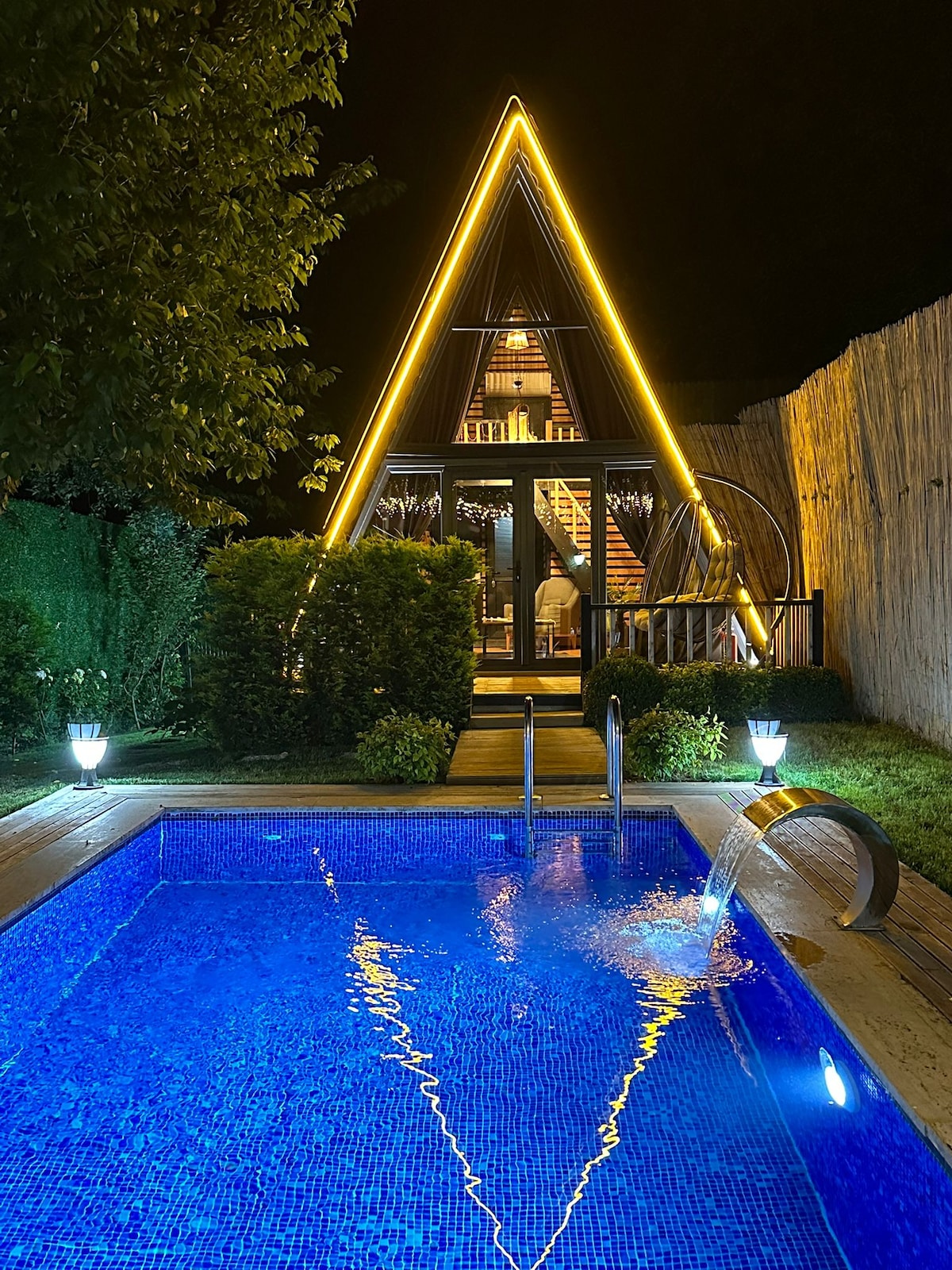 havuz+ oda içerisinde keyif jakuzisi mevcuttur (yaz sezonunda havuz ısıtması kapalıdır) Lütfen Teyit ediniz Bungalovumuz ve bahçemiz tamamen müstakil ve izole sadece size ait oluyor bahçe içerisinde keyif alanımız mevcut alanda ateş yakabilir mangal yapabiliyorsunuz Merkezi konumdayız Tüm zincir marketler yürüme mesafesindedir Yangın alarm sistemi mevcuttur Bungalovlarımızda kesinlikle sigara İÇİLMEMEKTEDİR Serpme kahvaltı servisi kişi başı +500 TL