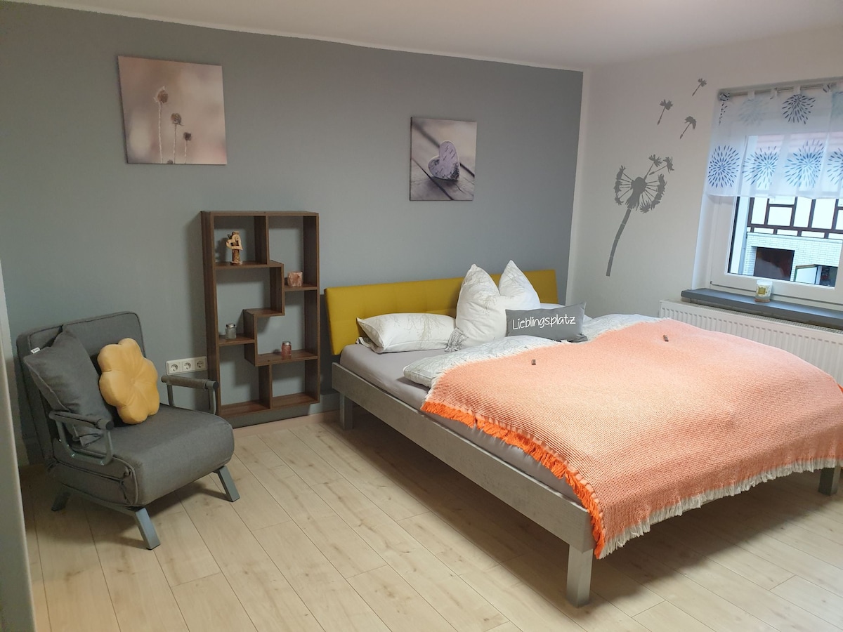 Nuestro luminoso y amueblado apartamento en Vellmar en las afueras de Kassel ofrece alojamiento para 4 personas (máx. 6 personas). El departamento es moderno y acogedor, el mobiliario no deja nada que desear. Está ubicado en el segundo piso de nuestra tranquila casa de dos familias en el distrito de Obervellmar. Es adecuado tanto para los huéspedes que pasan la noche en Kassel por trabajo como para los turistas. Transporte público a 300 m - estacionamiento frente a la casa