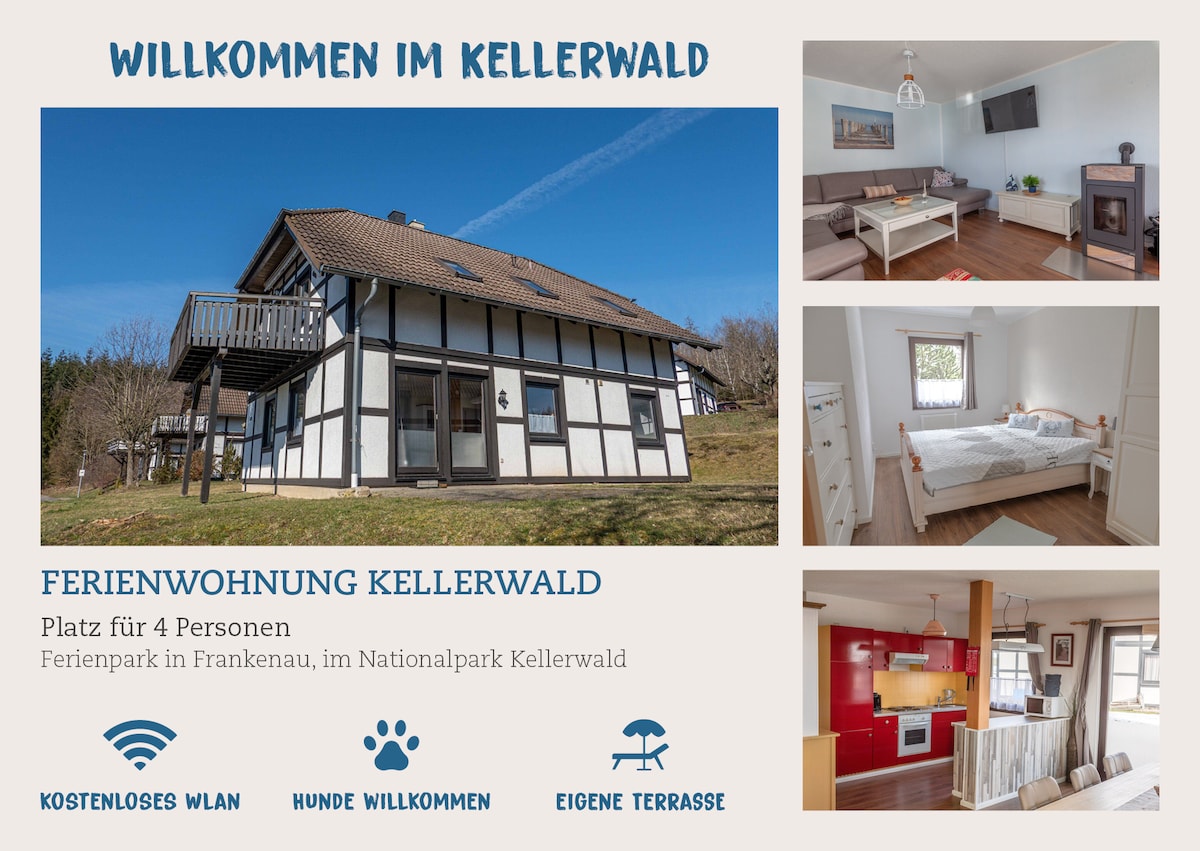 El apartamento de vacaciones en la casa de los conejos se encuentra cerca del lago Affolderner, justo a la entrada del parque nacional «Kellerwald», el punto de partida perfecto para realizar maravillosas caminatas. Hasta el lago Edersee hay unos 2 km, alrededor del lago hay innumerables posibilidades de actividades de ocio para jóvenes y mayores: el parque de animales salvajes, el tobogán de trineos de verano, un sendero de copa de árbol, el parque de escalada, ciclismo, deportes acuáticos y posibilidades de baño en el lago, un recorrido en canoa por el Eder y mucho más.