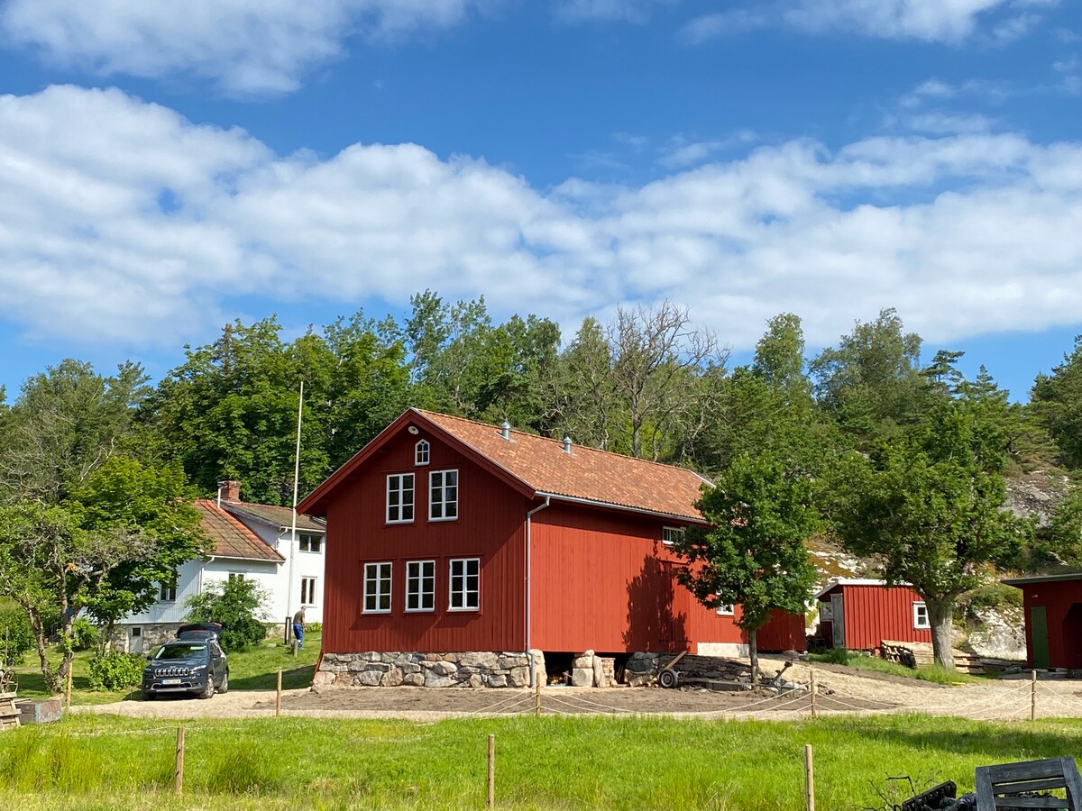 Hemos decorado nuestro "granero". ¡Todo es nuevo y fresco! ¡Perfecto para una familia o si está de viaje con sus amigos! Hay dos dormitorios y cocina. Cada dormitorio tiene un sofá cama con capacidad para dos personas. Acceso a WC y ducha en ambos dormitorios. Una cocina totalmente equipada. Está a unos 6 km del centro de Falkenberg, con muchos restaurantes acogedores. Si lo desea, ¡puede ir en bicicleta a la ciudad!