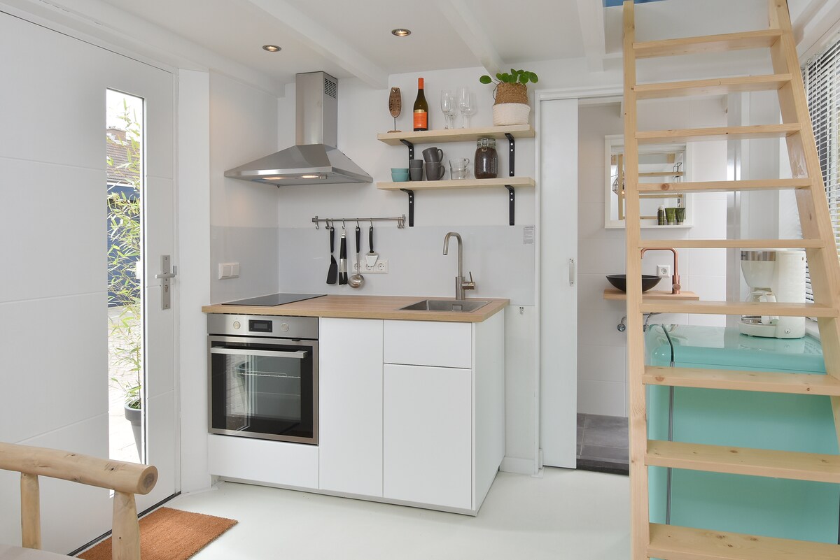 La casa de verano privada tiene una sala de estar con cocina bien equipada con horno/microondas, placa de inducción, hervidor de agua y cafetera Nespresso. Arriba se encuentra el dormitorio con cama tamaño queen y baño privado con toallas. Por supuesto, puedes utilizar el wifi gratuito. Nuestro alojamiento se encuentra en Katwijk aan Zee, a tiro de piedra de la playa y las dunas. El centro comercial, las terrazas y los restaurantes también se encuentran a 5 minutos a pie.