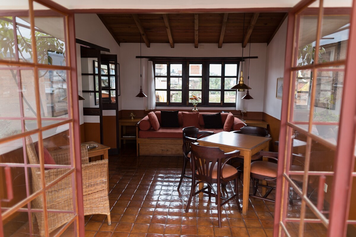 ¡Disfruta de lo mejor de ambos mundos! Nuestra moderna y cómoda casa se encuentra entre las granjas del campo, a 2 km a pie de uno de los grandes tesoros de Nepal, la antigua ciudad real de Bhaktapur. Relájate en tus alojamientos privados limpios y cómodos y disfruta de espectaculares vistas a la montaña desde el patio de la azotea. Caminata a destinos populares cercanos, como Pilot Baba, el templo Suryabinayak y mucho más. Tantas posibilidades. Los visitantes prolongados son bienvenidos. Estoy deseando alquilar el departamento para estancias largas.