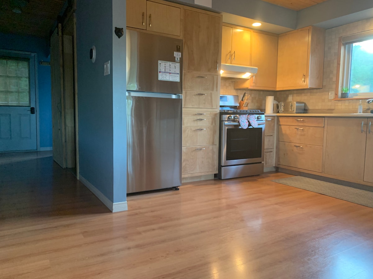 Una encantadora casita de campo «Lo antiguo se encuentra con lo nuevo» en el corazón de Port Sydney, Muskoka, a menos de 5 minutos a pie de Mary Lake, donde podrás disfrutar de la playa, hacer un pícnic o incluso lanzar tus embarcaciones al lago para pasar un día relajante. Al otro lado de la playa se encuentra un centro comunitario con un parque infantil y una cancha de baloncesto perfecta para nuestros huéspedes más jóvenes. A 2 km del club de golf North Granite Ridge. ¡Nuestra zona está rodeada de bosques preservados perfectos para hacer caminatas panorámicas y avistar vida silvestre! ✨