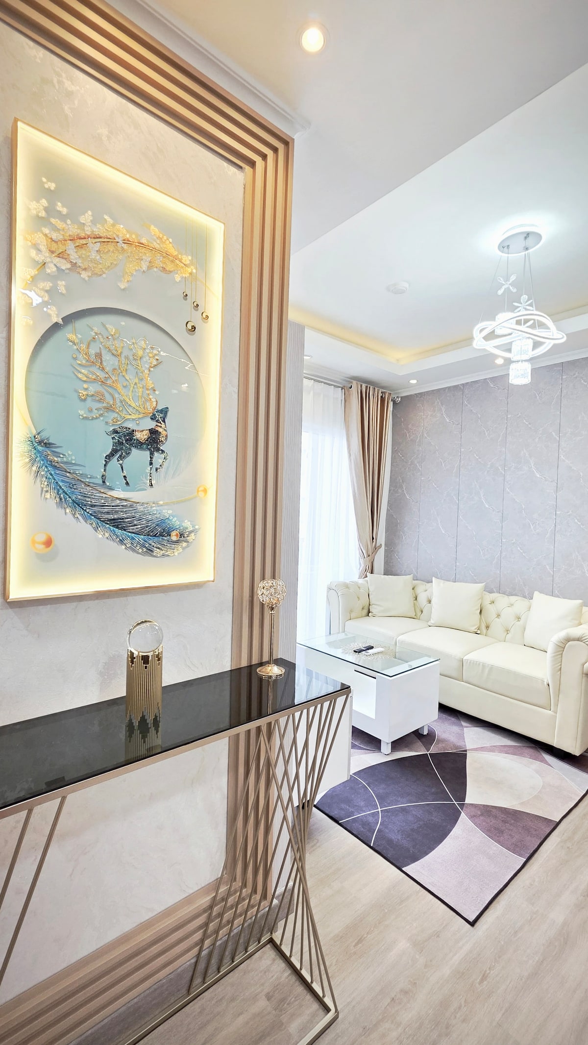 Brand New Renovated Apartment unit. Stay with the whole family to our homey spacious place, with 2 bedrooms and 1 sofa bed in the living room, fits 6 guests in total. Right in the biggest Mall of Indonesia (MOI) complex, tons of restaurants, shops and fun activities to spend for you and the whole family.