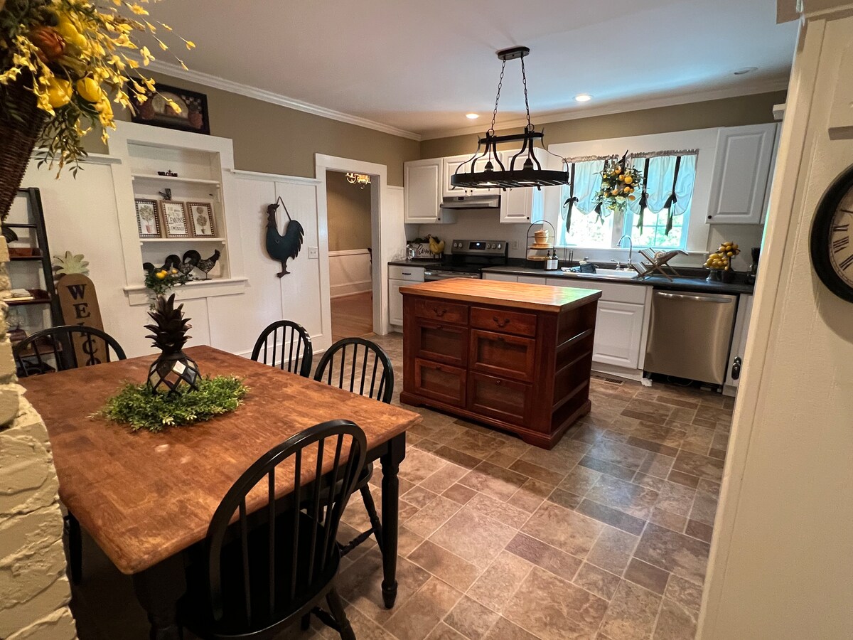 Bienvenido a Foxrun Venue, una encantadora casa de estilo colonial con capacidad para 14 personas cómodamente, con espacio para hasta 16 personas utilizando un sofá cama en el garaje. Ubicado en un entorno tranquilo y privado cerca de Waverly Estates, es perfecto para escapadas, reuniones o eventos especiales. Disfruta de la tranquilidad del campo a poca distancia en coche del lago Gaston y del lago Kerr. Tanto si quieres relajarte como si quieres celebrar algo, Foxrun Venue te ofrece una experiencia cálida y hogareña.