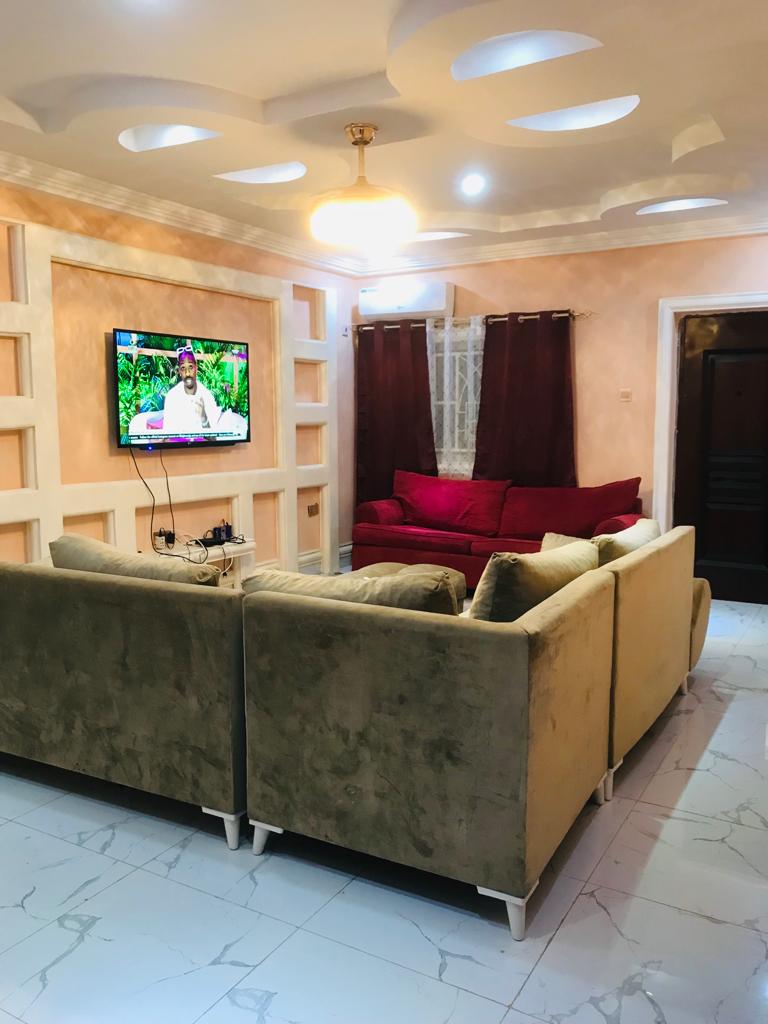 Forget your worries in this spacious and serene space. Tastefully decorated and fully furnished modern 3 bed house with scenic mountains views Perfect for: Remote workers, expats, travelers, and business visitors. Wi-Fi Guest Toilet AC Utensils Solar power Spacious parking Security guard CCTV Electricity Please note that Havillah Court is located the top of a steep hill but is accessible via a paved road from the main highway. You need a good car that can climb hills.