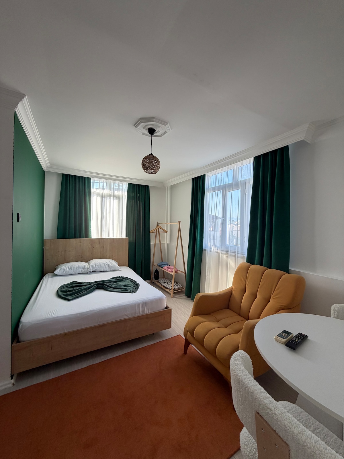 Está muy cerca del aeropuerto, la estación de autobuses, el transporte público y el tranvía en el centro de Antalya. Está a solo 2 km de las mundialmente famosas playas de Konyaalti. Apartamento: consta de 1 dormitorio + 1 sala de estar + mini cocina y baño privado. Máximo 2 adultos + 1 niño permitido Centro comercial Erasta: 1 km - 2 minutos Weaving Park: 1 km - 2 min Tranvía: 1 km - 2 minutos Playas de Konyaalti: 2 km - 5 minutos Acantilados: 6 km - 8 minutos Terminal de autobuses: 7 km - 10 minutos. Kaleiçi: 12 km - 13 minutos Aeropuerto : 18 km - 20 min