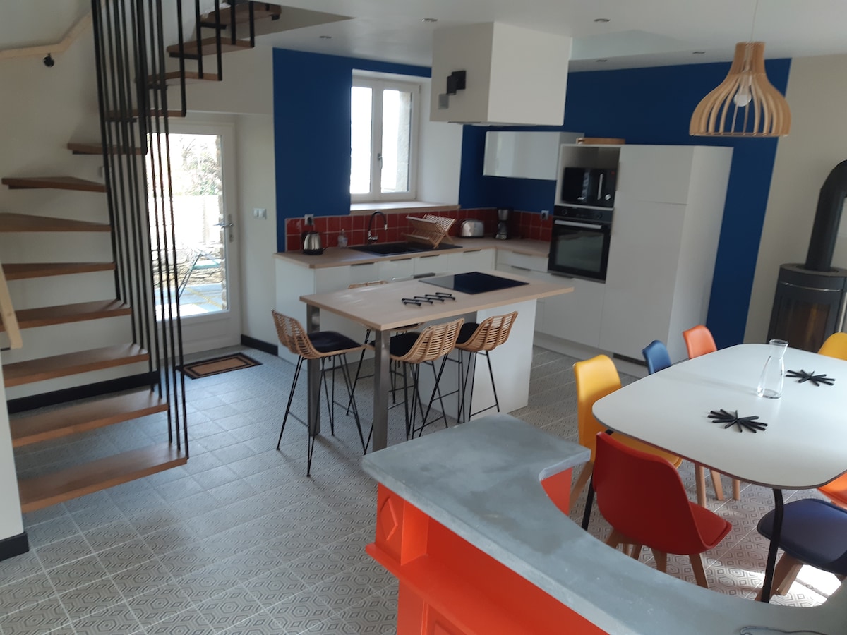 Antigua casa de pescadores completamente renovada con buen gusto justo encima del pequeño puerto típico de Merrien. 2 habitaciones con una cama de matrimonio, una de ellas en la planta baja, otras 2 habitaciones con 2 camas individuales cada una, 2 baños con ducha, 2 aseos y 2 salas de estar: un comedor/cocina y una sala de estar/TV arriba. El jardín totalmente cerrado garantiza la discreción y tranquiliza a los padres de niños pequeños. El sendero costero está a 1 minuto, las grandes playas a 13 minutos en coche.