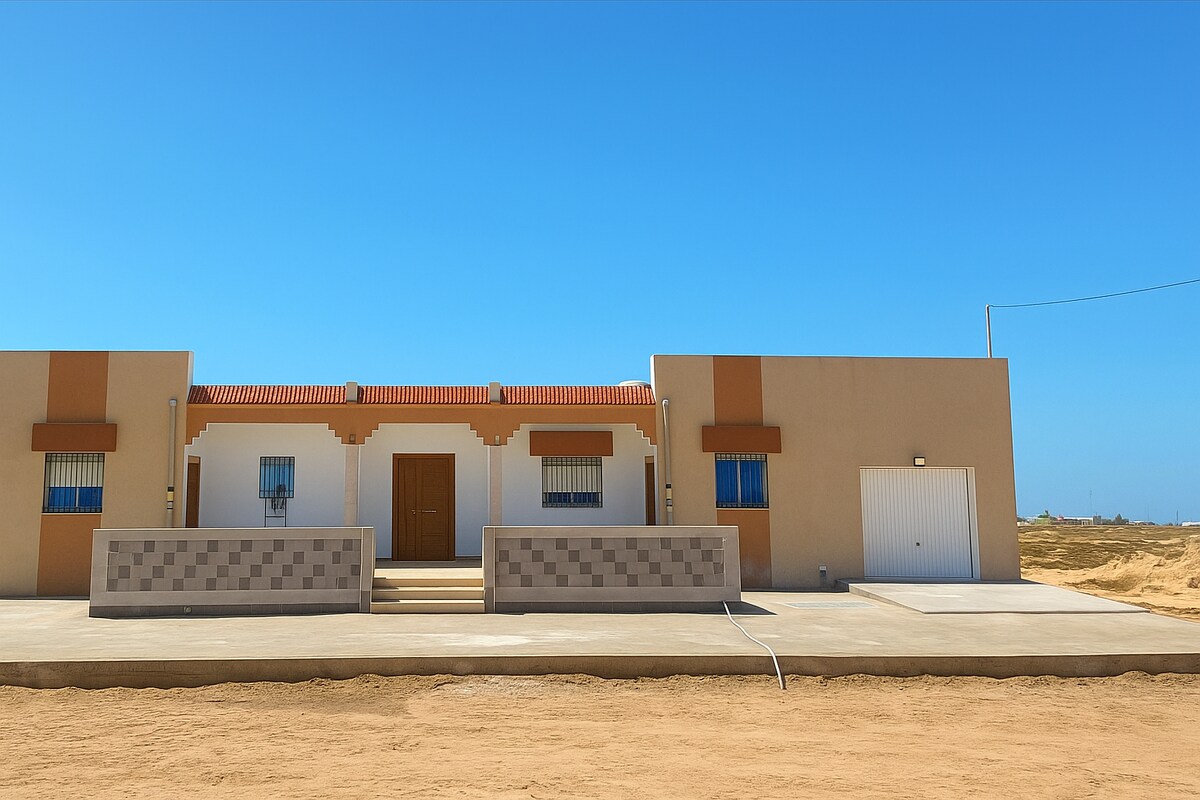 Genießen Sie Ihren Urlaub in einer stilvollen, hochwertig ausgestatteten Strandwohnung in direkter Meerlage auf der schönen Insel Kerkennah • Zwei Schlafzimmer • Modernes Wohnzimmer mit Klimaanlage • Voll ausgestattete Küche • Große Terrasse mit Essbereich und Grillecke Nur wenige Schritte vom Strand entfernt, ist die Lage ideal für Erholung, Badefreude und ruhige Abende am Meer. Ihre Gastgeber sind freundlich, hilfsbereit und sprechen Arabisch, Französisch, Englisch und Deutsch