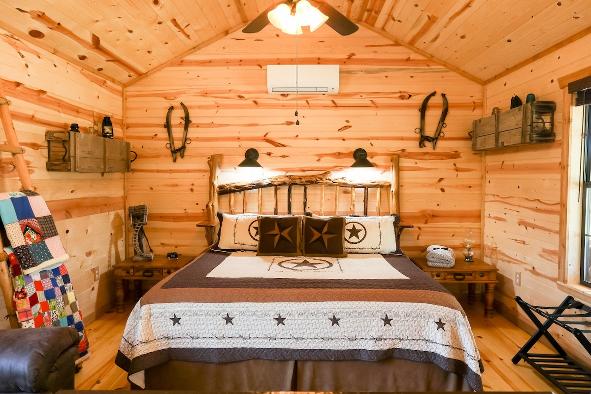 ¡City on a Hill en Spring Creek, en Fredericksburg, tiene cuatro cabañas privadas de lujo con vistas a Spring Creek! Aunque las cabañas están a solo 10 millas de la ciudad, los huéspedes se sienten como si estuvieran en otro mundo; ¡un mundo de pura Texas Hill Country! Una cama tamaño king con ropa de cama elegante de estilo Hill Country y un baño grande. El dormitorio/sala de estar incluye un televisor de pantalla plana; cocina americana completa con horno tostador, nevera de tamaño completo, cafetera Keurig y microondas. Porche grande con jacuzzi.