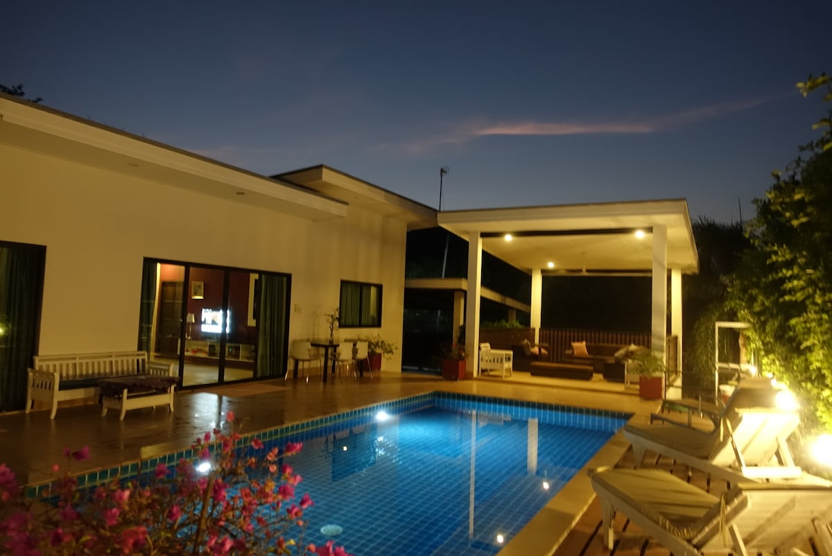 Modern Pool Villa – 5KM from Town, Soi 88 This stylish, fully private pool villa sits just 5 km from Hua Hin town center on Soi 88. Enjoy stunning mountain views stretching from the Myanmar range to Black Mountain Golf Club. The villa is fully air-conditioned and also fitted with ceiling fans for comfort. High walls surround the property, offering total privacy and security in the garden and pool areas. Inside, you'll find a well-equipped kitchen, and outside, a BBQ
