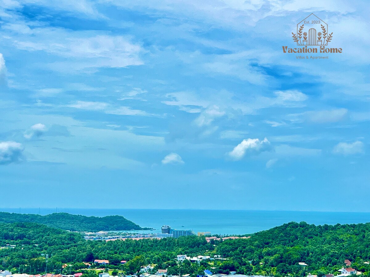 Este alojamiento único tiene un estilo muy personal para tu estancia con una gran vista. El lugar al atardecer más hermoso de Phu Quoc - 2 dormitorios y sala de estar, tanto con vista al mar como a la estructura emblemática de Nam Dao. - Lleno de muebles, estilo único. - Cocina con utensilios de cocina completos. - Hay muchos servicios públicos: gimnasio, club infantil, piscina infinita. - A unos pasos de los parques infantiles y servicios públicos inferiores.