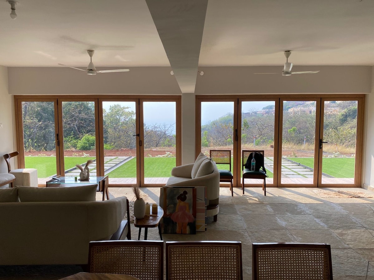 AAI Bungalow is amidst lush greenery and surrounded with mountains. Just 10 mins drive from beach. Its on a two acre (80000 Sq ft) gated plot with landscape and trees of fruits and flowers of local variety. Neat and clean property guarded by doberman dogs. Full time care taker on the property. Highly recommended for families. Ideal for kids and senior citizens. Consumption of alcohol, non-veg and smoking is not permitted on the property