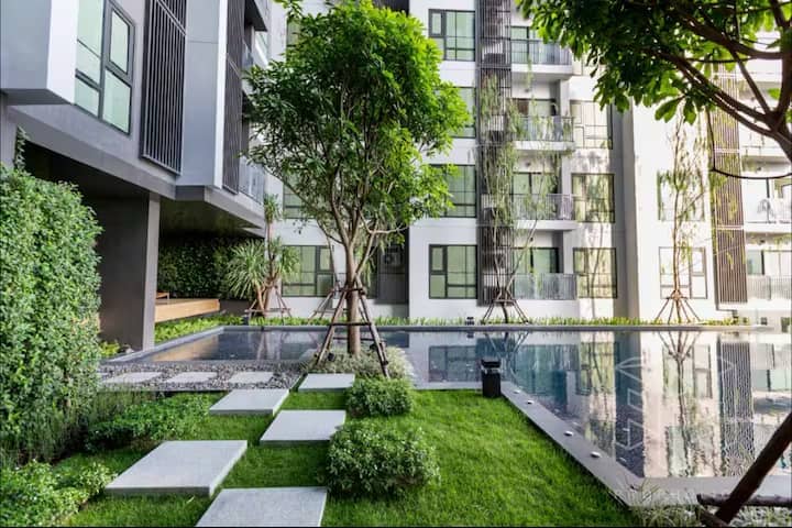 Escape to your private oasis with a tree view in the heart of the city! Our quiet condo retreat is nestled in a serene neighborhood, offering a peaceful escape with a stunning view of the surrounding trees. Enjoy a cozy living room, fully equipped kitchen, luxurious bedroom, en-suite bathroom, and private balcony. Plus, it's located near trendy Thonglor, making it easy to explore the area's attractions. Book now and experience comfort and relaxation surrounded by nature! Train 5mins Thonglor