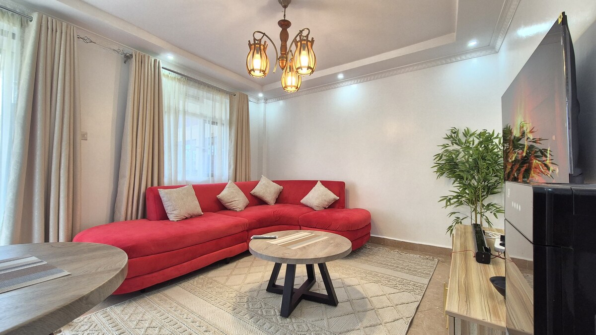 Disfruta de un lujo inigualable en este moderno apartamento de 2 dormitorios situado en el corazón de Nairobi. Este elegante espacio ofrece una luminosa sala de estar de diseño abierto, elegantemente amueblada con comodidades de primera categoría.
