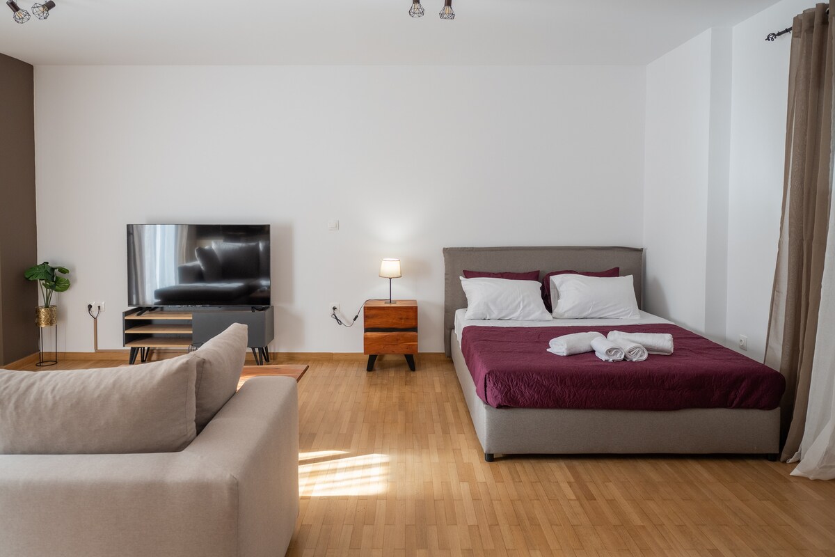 • New building with good soundproofing and 24/7 hot water via solar water heater. • Just 200m from the sea and close to beaches, fish taverns, casinos, shops, and entertainment venues. • Free high-speed Wi-Fi and free parking outside the building. • Flexible check-in at any time. • Airport transfer available at an additional cost. • Professionally cleaned, with high-quality mattresses for a comfortable stay. • Ideal for couples, friends, solo travelers, or professionals.