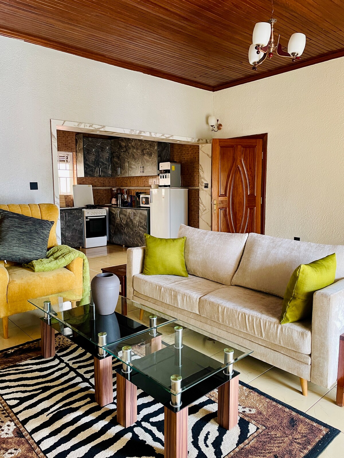Tu apartamento en Kigali Home Away From Home es un alquiler ideal para aquellos que viajan a Ruanda y quieren tener una estancia auténtica y acogedora. Situado dentro de Kigali, a 15 minutos en coche del aeropuerto de Kanombe y del centro de negocios Remera. Además, el alquiler ofrece el equilibrio adecuado de seguridad y serenidad, al tiempo que ofrece la oportunidad de sumergirse completamente en un vecindario residencial.