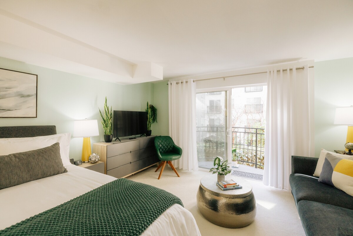 Alójate en el corazón de Ballard en nuestro estudio Oasis privado en la 1ª planta con registro autónomo y una cómoda cama tamaño king. Disfruta de un aparcamiento privado con un cargador de coches eléctricos de 50 amperios de última generación. Camina 3 minutos hasta la calle Market con sus restaurantes, bares y tiendas de moda, o súbete al transporte público en la esquina. Explora la escena turística de Ballard, visita la escalera de peces de las esclusas o relájate en el parque de la playa Golden Gardens, todo a un corto paseo en bicicleta o a pie. Disfruta de la comodidad urbana en un barrio vibrante.