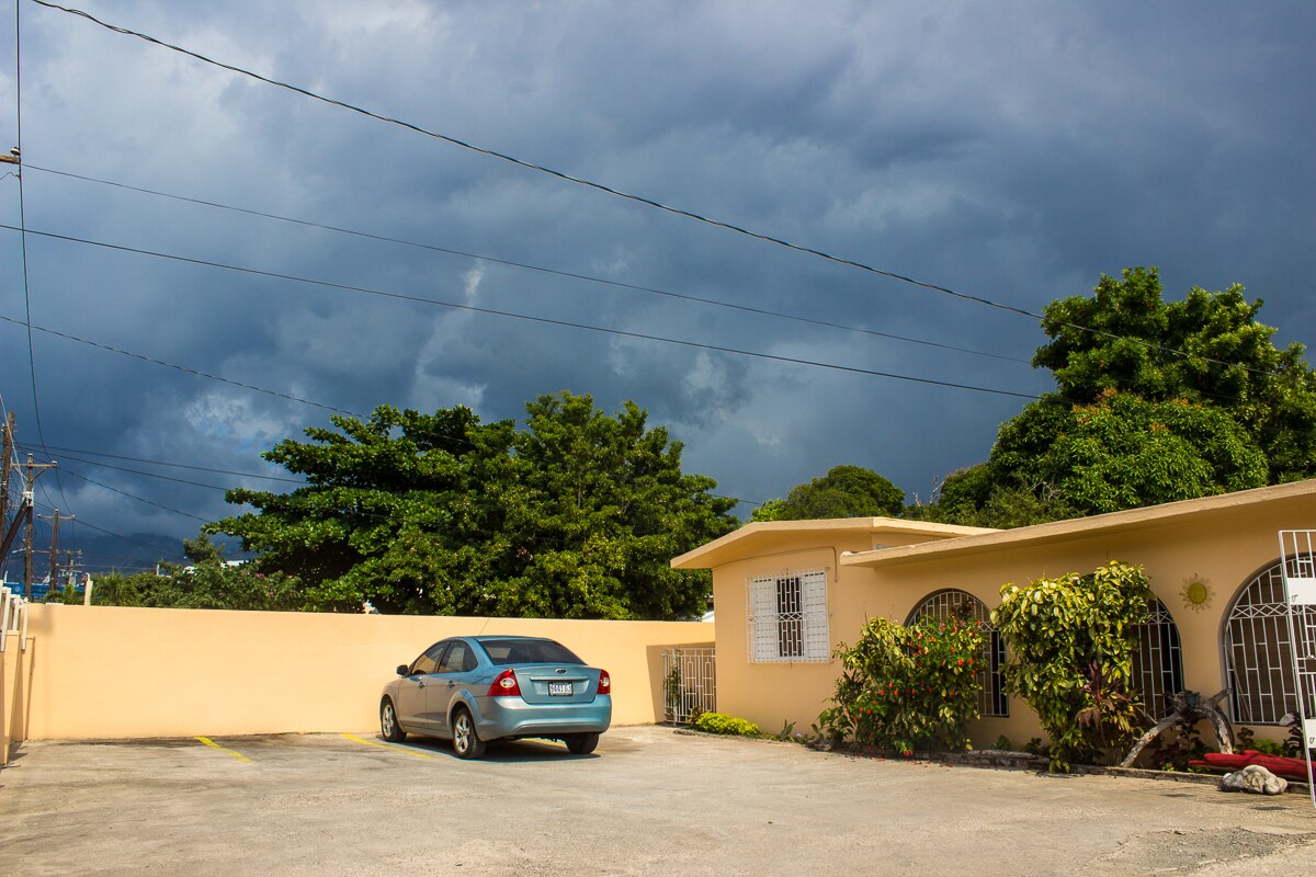Estamos en New Kingston. Todos los dormitorios en suite, estacionamiento seguro, hamacas y columpio en la silla. A cinco minutos a pie de todas las tiendas, restaurantes y discotecas dentro de la zona de New Kingston. A 10-15 minutos de la mayoría de las atracciones y discotecas de Kingston. Nuestro establecimiento es un Bed & Breakfast que replica una acogedora casa con un enorme espacio de patio y un gran lugar de relajación. Todo gira en torno al servicio al cliente y la seguridad, a la vez que mostramos a nuestros clientes la vida en la isla.